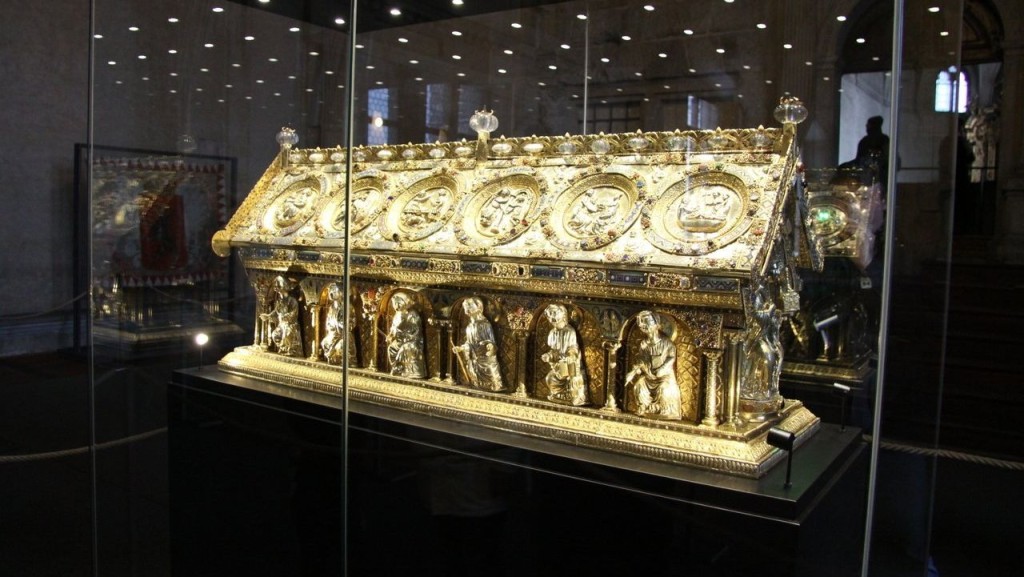 The St. Maurus reliquary is a unique Romanesque reliquary that is permanently exhibited in a town Becov nad Teplou in the western part of the Czech Republic. The reliquary was originally created in the 13th century in order to hold the skeletal remains of St. Maurus, St. John the Baptist and St. Timothy. It is a large case or a casket in a shape of a house with a wooden structure covered with silver plates, it consists of 12 small statues of saints and is decorated with Romanesque metalwork ornamentations and a number of precious gems. It is worth mentioning the person of St. Maurus, although there is not much of reliable information about his life, it is sure that he was a martyr living in the first or third centuries AD. When Becov nad Teplou castle owner Alfred de Beaufort bought the reliquary in 1838 from a church in Belgium- it was originally made for a Benedictine abbey in Belgium, he brought it to Becov nad Teplou and had it repaired. When his grandson had to flee the country in 1945 because he had collaborated with the Nazis, he hid the reliquary in a backfill of a chapel in Becov Castle. The reliquary has remained hidden for 40 years and was found in November in 1985 by criminologists. There were some attempts of buying it but the Czechs refused to sell it, not wanting it to leave the country. The reliquary was first displayed to the public at the exhibition at Prague Castle in 2000, but at that time it has not been fully restored. Finally in 2002 it became a part of a long-term exhibition and is exhibited in a blue dining hall in Becov nad Teplou castle.